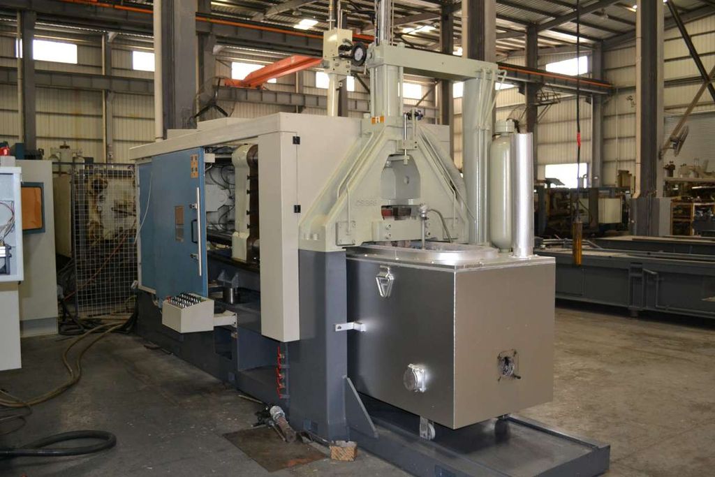 Двухфазный узел прессования для медленной и быстрой фазы заполнения пресс-формы. Узел оснащен надежным цилиндром запрессовки, закрепленным на жесткой балке, которая опирается на раму машины. Данная конструкция обеспечивает условие полной неподвижности печи относительно машины. Гузнек выполнен из специальной стали и также опирается на балку. Крепление пресс-поршня к цилиндру прессования выполнено в виде быстросъемной муфты. Подача гидравлического масла в цилиндр запрессовки производится через патрубки распределительного коллектора. Что обеспечивает быструю подачу гидравлической жидкости из аккумулятора в прессующий цилиндр. Скорость и давление запрессовки независимо и программируются. Начало второй фазы заполнения контролируется электронным методом на пульте управления. Опорная балка узла запрессовки и головка цилиндра оснащены водяным охлаждением. Тигельная печь смонтирована на выдвижной раме, расположенной между опорами балки. В печах мы используем электрические либо газовые нагреватели.