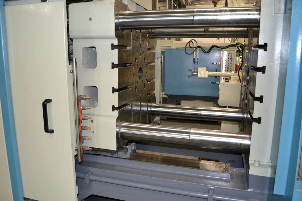 Узел запирания включает сдвоенный рычажный механизм запирания пресс-формы с гидравлическим приводом. Централизованная автоматизированная система смазки для всех подвижных частей. Узел запирания гидравлически удерживается против сопла запрессовки с применением мощных гидравлических цилиндров. Данные цилиндры также используются для отвода подвижной части пресс-формы во время цикла работы машины и при замене сопла. Центр неподвижной плиты снабжен сменными вставками для выбора различного положения запрессовки. Корректировка высоты положения пресс-формы производится посредством электрического привода. Автоматическое переключение на низкое давление в момент смыкания пресс-формы для предотвращения повреждения пресс-формы. Движения узла запирания на закрытие и раскрытие пресс-формы программируются независимо и в произвольном диапазоне скоростей. Узел запирания оснащен программируемым гидравлическим выталкивателем, который предусматривает программируемые задержки для повтора рабочего цикла и обратного хода выталкивателей.
